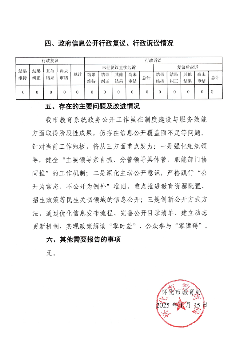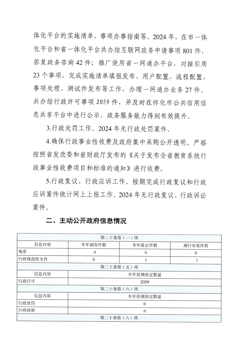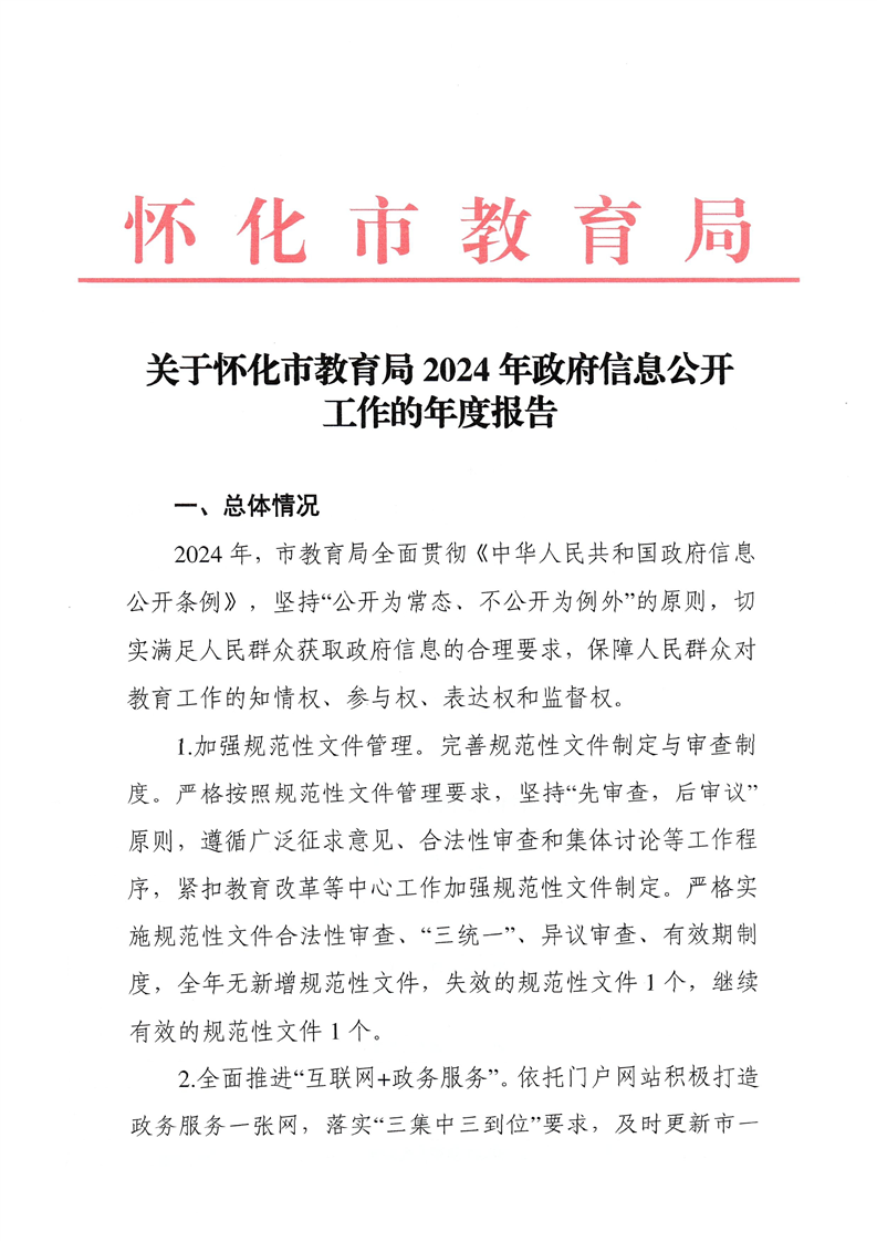怀化市教育局2024年政府信息公开工作年度报告