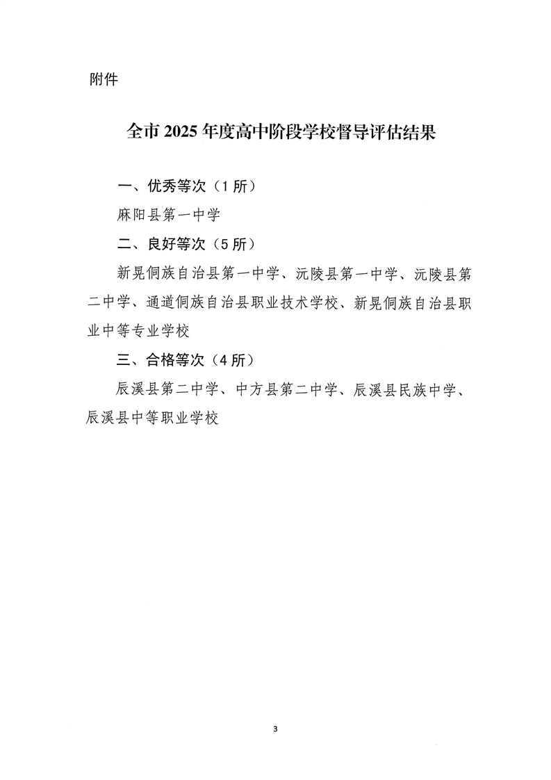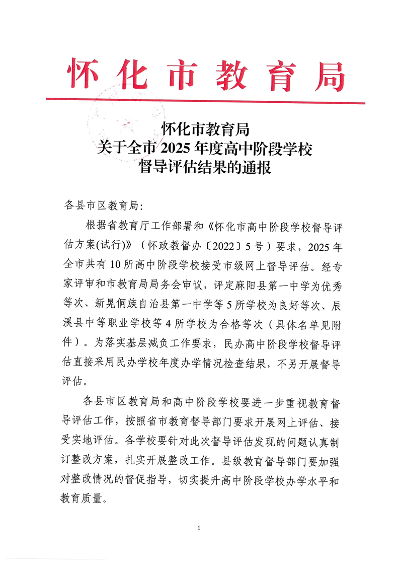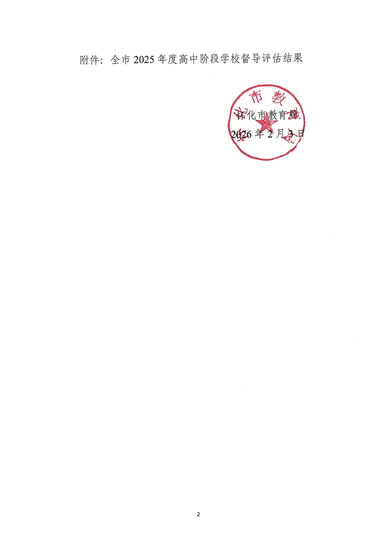 怀化市2025年度高中评估结果通报