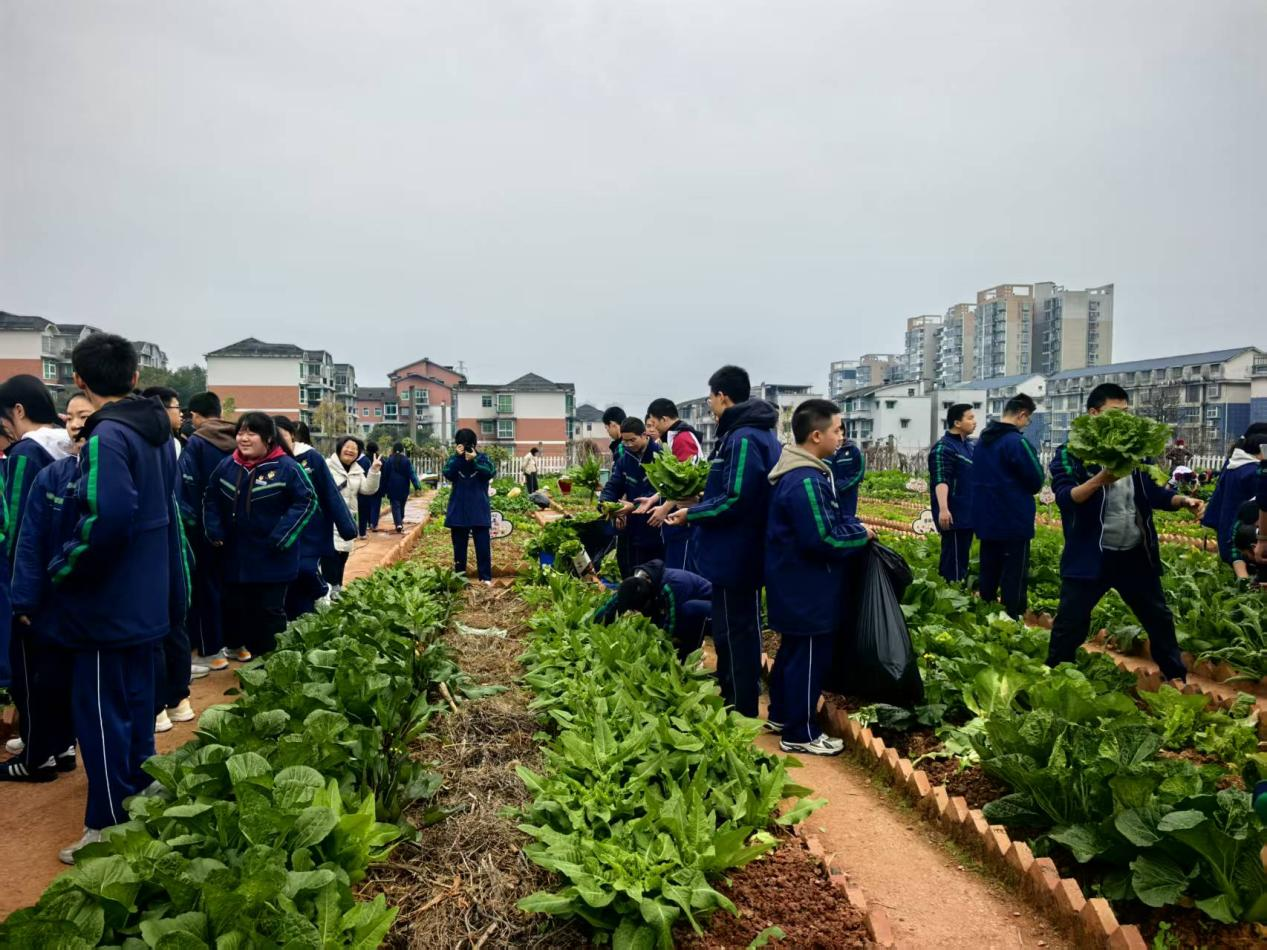 活动当天,全体学生在各班班主任的组织下,有序前往学校劳动实践基地。在班级的劳动责任地里,学生们亲手采收三个月前种下的各类蔬菜。从秋天播种、日常管护到寒冬收获,完整的种植周期让学生们亲历了作物从萌芽、生长到成熟的自然历程,在付出与等待中深刻体会到劳动的不易与丰收的喜悦。